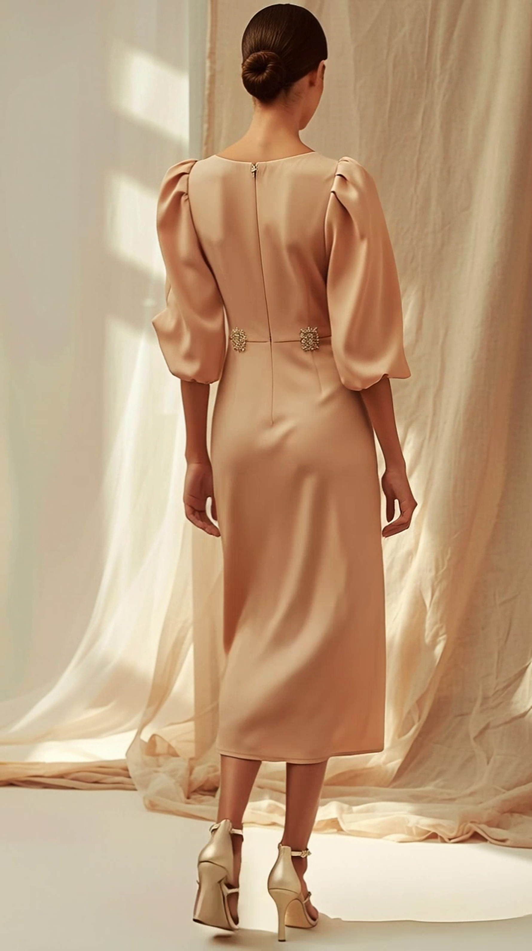 Sleeves: short, slightly puffed