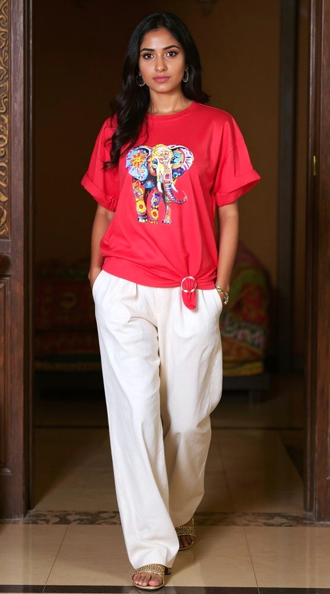 Design: Loose fit with rolled-up sleeves, adjustable hem